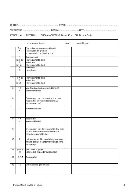 Klasse L1 uitgave 2020 Datum Plaats. Hier staat een verzameling van alle proeven voor de paardensport. Mennen L dressuur proef 79 Grave 4-7-09.