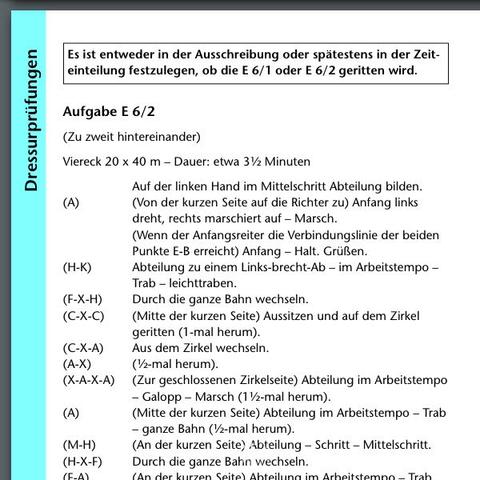 Dressuraufgaben E62 Pferde Turnier Dressur